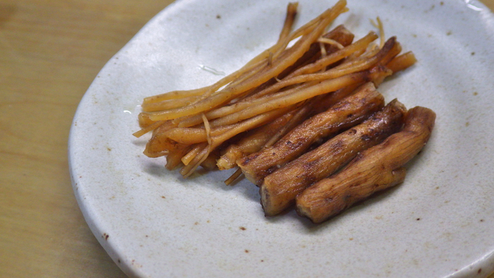 2月。 4月下旬。 5月上旬。 花。5月下旬。 6月上旬。 ノアザミ。 アザミには多くの種がありますが、初夏に咲くのはこのノアザミだけです。 2月中旬。 もっとちゃんと撮ればよかった・・・ただのアザミだと・・・無知は罪・・・ 地域により絶滅危惧種になっているようです・・・とても瑞々しく柔らかな根・・・これは美味しそう・・・ 6月上旬。 葉を広げた大きさは80cm程度かな? デカイ!! あちこちにありましたが、一つ採取しただけでボリュームありすぎ。 10月上旬。花。 11月上旬。 ハマアザミ。 根が食用となるので、“ハマゴボウ”とも呼ばれます。 地域によっては絶滅危惧種に指定されています。 3月中旬。 3月下旬。アザミなのに葉にトゲがないので、採取が楽なのは良い所。 4月上旬。 高さ135cmほどもありました。 後日・・・175cm程のものも!! デカ過ぎやろ♪ 5月上旬。川沿いに生えていたもの。 キツネアザミ。 ひょろひょろと細く立ち上がり、小さな花だけが目立ちます。 生育条件の悪い場所に育ったアザミかと思ってしまいました・・・良く見たら違う! 5月上旬。 8月上旬。 9月上旬。 10月上旬。花。 フジアザミ。 亜高山帯の崩壊地などで見られるアザミです。 普通のアザミ同様に、若葉や根を頂くことができます。 白い模様がカッコイイ・・・何アザミだろうか・・・ 山の中にて。 アザミ。 日本には150種を超えるアザミがあるようですが、詳しい情報が少ないです・・・ 種類によりトゲが恐ろしく硬く痛いので気を付けて下さい。 葉を取り除き、茎を利用することができます。 アザミの根は“大薊”と呼ばれ、解毒・強精・回春に効果があります。 シーチキン和え。 葉の形はどう見てもアザミ! でも、トゲは無い・・・しかもボリュームがあって美味しそう♪ で、採取してきて・・・何となく、シンプルに茹でたら和えてみました。 調べたらキツネアザミと言う種類でトゲが無い! これは食べやすい♪ これが、普通に風味あり、食感良く、お店で売ってる葉物レベルでした。 もちろん、野草なので栄養分も♪ 硬いトゲが悩みの種ですが、キツネアザミは食べやすくお勧め♪ と! 気付いたのが2020年! 葉柄のシラス和え。 何となくで作ったのですが、無意識でダイコンの葉とシラスの和え物のイメージがあったのかも。 大きなハマアザミの葉柄は、結構しっかりした感じがあったので、フキの下拵えのように表面の薄皮を剥いて茹でた後、細かく切ってシラ スと和えました。 これは・・・歯ごたえが丁度良く、シャキシャキ! しかも風味も良い! 気が付いたら、この料理もお酒も胃袋に入ってました・・・ 2月、まだ小さな若い葉を採取したのですが、それでもトゲは痛かったです。 火で炙ってトゲを焼いてから天ぷらにしました。 これは普通に美味しいです。 キツネアザミ。トゲが無くて食べやすい!! のですが、ちょい苦かった。 葉の天ぷら。 ベーコン炒め。 若い葉は火で良く炙ってトゲを焼いておきます。 後は、普通に料理に使って美味しく頂けます。 美味しいです。もっと食べたい・・・ キャベツと一緒に。 2月中旬、僅かに採取したアザミ。写ってませんがヤブカンゾウも一緒に炒めました。 アザミの苦みがアクセントで良いです。 ハマアザミの葉柄の炒め物。 ハマアザミの葉柄はアクが無いのでそのまま料理しても良いようです。 今回は、他の料理を作って食べている間・・・1時間以上、水に晒して(放置して)から使いました。 シャキシャキした歯ごたえがあり、悪くありません。 今回は手元にウィンナーしかありませんでしたが、ブタコマなどの方が合うでしょう。 豚肉とアザミの葉柄のキムチの素炒め。 ビールにピリ辛があう!! 美味し過ぎる・・・ キツネアザミの炒め物。 2月、根も葉も全て使い、茹でて水に晒してから使いました・・・が!! これは苦みが強かったです。もっとしっかりアク抜きした方が良かった。 作ったそのまま♪ やっぱりご飯に♪ ハマアザミの葉柄のそぼろ煮。 作り方: 1、アザミの葉柄は茹でて水に晒したら表面の皮を剥いて適度に切っておきます。 2、鶏ひき肉にお酒を加えて軽くバラケさせます。 3、鍋に出汁、みりん、醤油、鶏ひき肉を加えて煮込みます。 4、アクを取りながら煮汁がほとんど無くなるまで煮たら完成♪ 単品でも十分美味しいのですが、やっぱりご飯に載せると別格です♪ ハマアザミの佃煮。 50cmほどもあるハマアザミの主脈を使った料理です。 これはキャラブキに似てる・・・味も滲みて美味しいです。 作り方: 1、葉の主脈を取って適度に切り揃えておきます。 2、2回茹でこぼしたら、鍋に入れ、水、砂糖、しょうゆ、出汁を入れて煮詰めます。 3、最後にみりんを加えて煮詰めたら完成♪ 茎。キャラブキ風。 御飯と一緒に食べると美味しいです。 フジアザミの葉柄の佃煮。 フジアザミの葉柄の佃煮をご飯へ。 葉を広げた大きさが20cm程度のものを使いました。 やはり大きすぎるものは硬いようで、本には1〜2年程の若いものが良いとあ