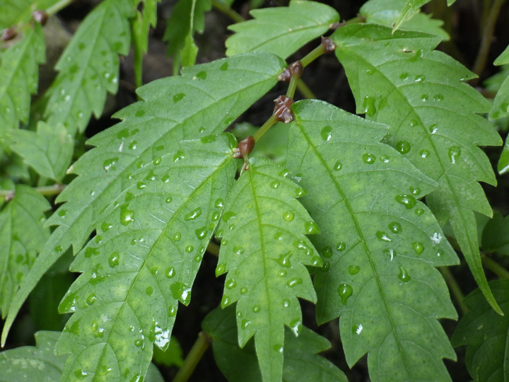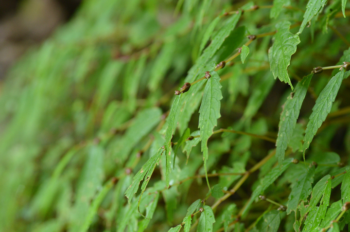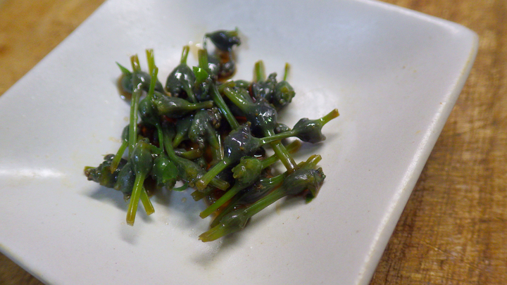 4月下旬。桜の花びらが僅かに写ってます♪ 7月中旬。 10月中旬。 ウワバミソウ。 別名:ミズ。山あいの少し湿った場所に生えてます。 2025年になるまで、出会えませんでした! やっと♪ 平野部に近い低山では見た事がありませんでした。 主に茎やムカゴが食用として利用されます。 春には柔らかな芽や葉、夏頃からは太くなった茎、秋には美味しいムカゴが頂けます・・・山で生き残るためには、まず、沢に行けばどこ にでも生えているウワバミソウを憶えろと言われるようです・・・私の家の近くの低山では見かけず・・・そこそこ山へ分け入らないと見 つかりませんでした♪ 葉を使った料理: ミズは、主に茎を使うのですが、葉もクセがあるけど食べれるとか(食べられる野生植物大事典より)・・・で♪ まずは、シンプルにお浸しで♪ 春の若い芽と葉を使いました♪ これはクセなどなく、普通に美味しい♪ シーチキン和え。 こちらも春の若い芽・葉を使いました♪ 普通に美味しいです♪ ミズの葉を使ったたたき。 生まれて初めてミズ(茎)のたたきを頂いて美味しかった♪ で♪ 根本の茎を頂いた後の残り・・・葉と細い茎、芽など・・・これをどうやって頂こうか・・・試しに同じ“たたき”にしたらどうなる♪ 前情報で葉はやや苦味があると言うことで、茎よりもじっくり湯通ししてから、同じように“たたき”にしてみました♪ 味噌を加えているので、当然、マズく無い♪ が、ミズ自体の風味はあまり感じず・・・もちろん茹で過ぎではありません・・・ 定番の美味しい茎を頂いた後だから余計にそう感じたのかも知れませんが、これは茎を使ったものと比較をしてはいけません・・・ 味噌の風味もあり、不味くはないので、やはり、葉も捨てずに利用することをおすすめします♪ 茎(特に根本に近い部分)を使う料理: 細かなヒゲ根を取り除いて太くて瑞々しい部分を使います。 ミズのたたきの作り方: 生でそのまま使う場合もあるようですが、私はサッと湯通ししました。 (湯通ししたら赤い色が緑色に♪) ビニール袋に入れてすりこぎ棒などで叩いて潰します。 これが終わったらまな板に乗せて包丁で細かく叩いて・・・ (ここでさらに粘りを出すためにすり鉢に入れて混ぜ混ぜする人もいるとか・・・) 味噌を加えます。私はミズの量よりも少なめ・・・6割程度でしょうか・・・お好みで♪ さらに、お好みの薬味を加えて完成です♪ 私は、当日採取できた山椒の若い芽を一つだけ混ぜました。 その他、よく使われる薬味は、しょうがやにんにくなど♪ 完成したミズのたたき。 ご飯へ♪ こ・れ・が!! 何これ!! 美味しすぎる♪ ご飯と一緒にあっという間に胃の中へ消えました♪ 途中で、わずかにチョロっと醤油を掛けてみましたが、これも美味しすぎる〜♪ 残りの半分は翌朝、納豆卵かけご飯へ♪ 普通に納豆卵かけご飯も大好きなのですが、ここへ追加♪ ざっくり混ぜたら・・・ズゴゴゴゴ〜♪ 美味しくって・・・まるで飲み物のように掻き込んでしまいました♪ 茎(ムカゴ)を使う料理: お浸し。 この食感!! シャキシャキの表現だと山芋的な感じ・・・ふとネットに出てた表現♪ ショリショリ♪ そう! こんな感じ♪ ショリショリと心地よい食感に僅かな粘りがあって風味もすこぶる良い♪ これは美味しい♪ 作り方: 1、熱湯に入れて火を通します。(茶色だったムカゴが緑色に変わる頃程度) 2、粗熱を取ったらめんつゆに浸けて翌日から美味しく頂けます♪ (めんつゆは水で薄める場合もあります・・・私はそのまま♪)