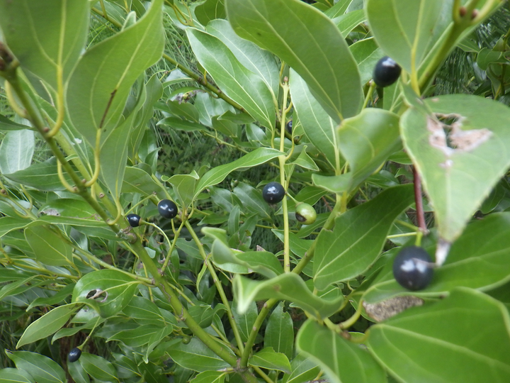5月下旬。 葉はよくテカリます。 10月上旬。 12月中旬。実。 クスノキ。 日当たりの良い所では、もっと太く大きくなるのですが、上の写真のものはやや日陰&まだ若い木です。 クスノキにはダニ室があると知り・・・ほんと、いてもたっても♪ かなりの数・・・殆どの葉の葉脈の間に・・・これか!!!! 超拡大!! 分かり難いのですが、細かな毛があります。 ダニが勝手に寄生していると言う分けでもなく・・・どうやらクスノキと共生しているらしい・・・との事です。 これは現在進行形で研究されてます♪ 面白い♪ 5月上旬。 10月下旬。 ヤブニッケイ。 3本の葉脈が目立ち、両側の2本は肩のあたりで途切れます。 クスノキ、ニッケイ、ヤブニッケイ・・・どれも似ています・・・どれもクスノキ科クスノキ属・・・ ちなみに、「食べられる野生植物大事典」には、ニッケイとヤブニッケイが、食用野生植物と其の調理法にはクスノキが食用として紹介さ れています。 その他、クスノキの実で、リキュールも作れます。 左がクスノキ、右がヤブニッケイ。 クスノキの葉には、ダニ室があるのがわかります。 ヤブニッケイは3本の葉脈のうち、両側が肩の辺りで消えているのがわかります。 左より、シロダモ、ヤブニッケイ×2、クスノキ×2。 シロダモは、表面だけ見ると、とても良く似てますが、裏を見るとその名の通り・・・白っぽいので分かります。 クスノキは、葉の縁が波打ってます。 浸けた直後。 4ヶ月半後。 翌年再び♪ 今回は葉のみ。 浸けた直後。 4ヶ月後。 約1年3ヶ月後。 クスノキ酒。 葉を3日ほど陰干しした後、酒量の6〜7割り程を入れます。 1週間で中身は取出し、3〜4ヶ月で熟成します。 葉っぱの沢山あるクスノキ・・・極一部をお酒に浸けただけで・・・爽やかで風味の良いお酒になりました。 浸けた直後。 5ヶ月と10日後。 ヤブニッケイ酒。 葉を2〜3日陰干しした後、その3〜8倍のお酒を入れて作ります。 4〜8ヶ月で熟成します。 こちらも、クスノキ酒と同様に、風味良く、爽やかなお酒に♪ ちなみに、両者の違いは・・・同じ日に同時に飲み比べてみないと、分からん!! 2022年現在・・・お酒に浸けて利用するとの情報しか見つかってません・・・ と言う事で・・・ここからは、実験♪ クスノキの枝先をカラカラに乾燥させました。 クスノキは、クスノキ科のクスノキ属。 ヤブニッケイは、クスノキ科のクスノキ属。 ニッケイは、クスノキ科のニッケイ属。 なぜこんな事を書いているかと言うと・・・実は ローリエ(月桂樹)が、クスノキ科のゲッケイジュ属だと知ったのです。 属は違えど、同じ科・・・まるきり別物と言う分けではない・・・ そして、同じように葉に香りのあるもの・・・同じように使えないかと思ったのです♪ カレーに。 さてさて・・・何枚投入しようか・・・少なすぎて変りませんでした・・・では意味がない・・・ 逆にあまりに多くても逆に調整の幅が分からなくなってしまう・・・ ちなみに、ローリエをカレーに投入する場合は、4人分のカレーに1枚とか。 そ・し・て・・・私が投入したのは・・・5枚!! (1人分です。) 普通に利用されないので、ローリエよりは薄いだろうと思ったのです。 今回は、レトルトカレーを鍋に入れ、さらに煮込むので水を少々投入し、クスノキの葉は半分に千切ってから投入しました。 これをコトコトと・・・ 上の写真は、鍋からそのまま掛けた状態です・・・葉は食べても美味しくないので取り除いてから頂きます。 さてさて・・・ これは、新感覚♪ 口に入れるとスースーするんです♪ 面白い♪ スースーカレーだ♪ ちなみに、5枚はハッキリとスースーしました。4枚だと弱めのスースーになるでしょう♪