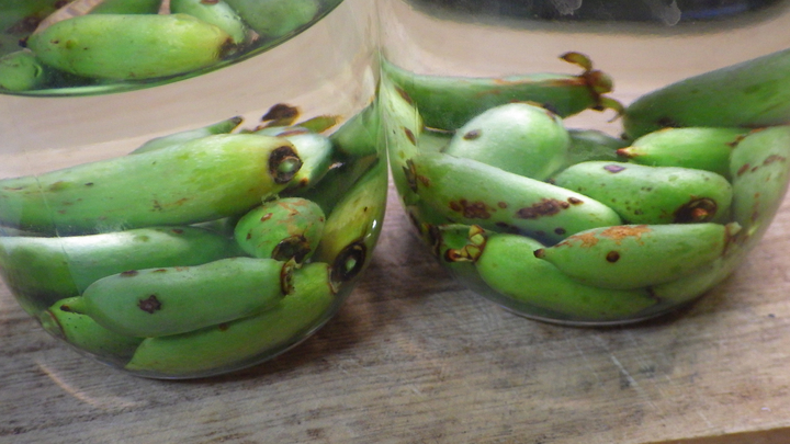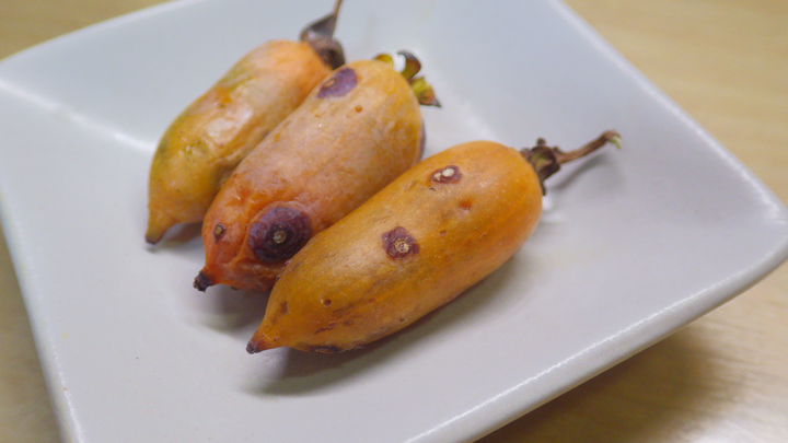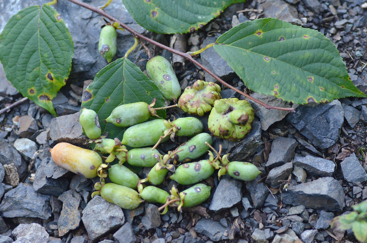 7月中旬。 7月下旬。 8月下旬。 右上の異形の実は、虫えい果です。 10月中旬。 マタタビ。 2025年にして初めて実を採取することが出来ました♪ マタタビと言えば、ネコ♪のイメージですが、その実は食用(もちろん人間の)にもなります。 生で♪ 熟したものは生でも頂けるそうで♪ いざ、人生初♪ 表面はややしっかりしてて、中は柔らかい・・・これは熟したカキっぽい雰囲気♪ もちろん、風味は違うのですが、熟した実!! でした♪ マタタビ酒。 今回のように普通の実や、虫えいの実などを使います。 採取したまま使う場合や、数日天日干しする方法もあるようです。 ヘタ部分は取り除いて浸けます。