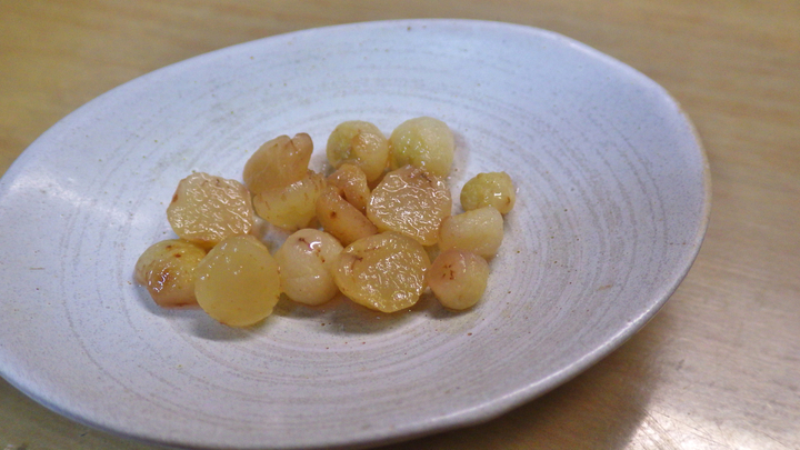 2月中旬。海岸沿いの藪の中で見つけました。 これは最初に見つけた時。この時は地中があんな事になっているなんて思いもよらず・・・ 写真は、左側に生えていたタマシダを持ち上げ、右側へめくった状態です。 右側は株の根っこ側(裏側)が見えている状態。これが左側にあったのです。 2月上旬。こんな真ん丸なものが、コロコロしてるなんて♪ 3月下旬。 11月中旬。 タマシダ。 海岸近くなどの乾燥した場所を好んで生えるシダです。 これは、沖縄の山菜類データベース(平成30年4月 沖縄県農林水産部 森林管理課)に載っていました。 食べ方は“生”で、そして味は甘く爽やかとか!! 1年通して、いつでも頂く事ができるのは良い所。 若葉が食用になるとの事で若芽を採取してみました。 (一番左は最終的に却下しました・・・これらは4〜5cm程度です・・・小さくて細い♪) 一番無難と思われる天ぷらに♪ 普通に美味しく頂けましたが、まあ普通に野草の天ぷら的な・・・しかも小さい♪ 水で洗っただけのもの。サバイバル状況下ならば、これで十分過ぎるでしょう。 この部分は、“塊茎”と呼ばれます・・・と、言う事は“茎”!! よく見ると、ほんと!! シダ独特な“茎”そのものなんです。 薄茶色のフィルム状のものが全体にビッシリ!! ティッシュで擦って表面を綺麗にしたもの。 半分に切ってみたもの。実ではないので、種は無し! 茎ですが、強い繊維はありません。 まずは“生”で♪ 前情報では、甘くて爽やか・・・甘くて爽やか・・・パクッ♪ これは確かに僅かに甘い♪ そして食感はナシのような♪ そして爽・や・か・・・!? 口に入れて暫くすると、口の中がシワる!! 口の中の皮膚が縮む感覚!! 渋い!! そして、地中のものなので当然か・・・土風味も。 甘くて爽やか・・・この前情報だと、かなり美味しそうなイメージですが、実際には・・・あまり生で食べたいとは思えないです・・・ 砂糖煮。 これは実験・・・見た目と食感がナシっぽい・・・と、言うことで・・・ナシのレシピを探したら・・・ナシのコンポートなるものを見つ けたんです♪ が!! コンポート作りは、砂糖とレモンを使って煮詰めるのですが、レモンがない・・・なので、ただの砂糖煮です♪ 見た目と食感がナシっぽい・・・それを砂糖で煮詰めたら・・・甘みが加わって・・・これってナシだ!! 浸けた直後。 約1年1ヶ月後。 タマシダ酒。オリジナル。 これは極僅かですが渋味がありました。この渋味は、さらに寝かせる事で美味しく変わる・・・かも!?