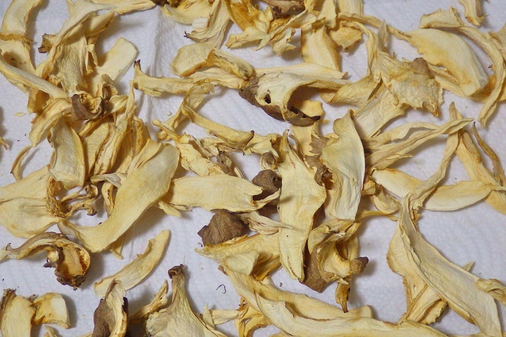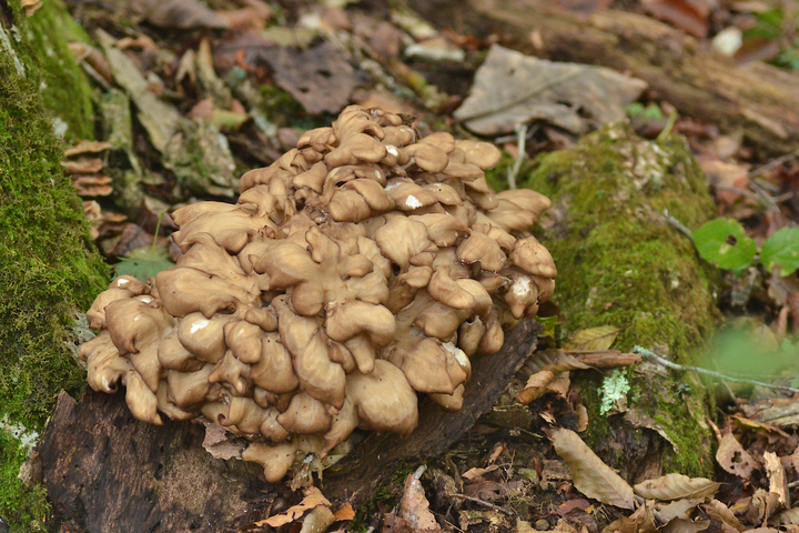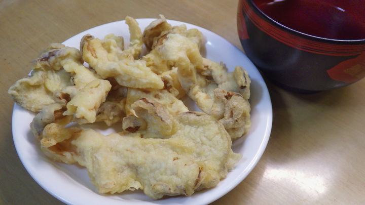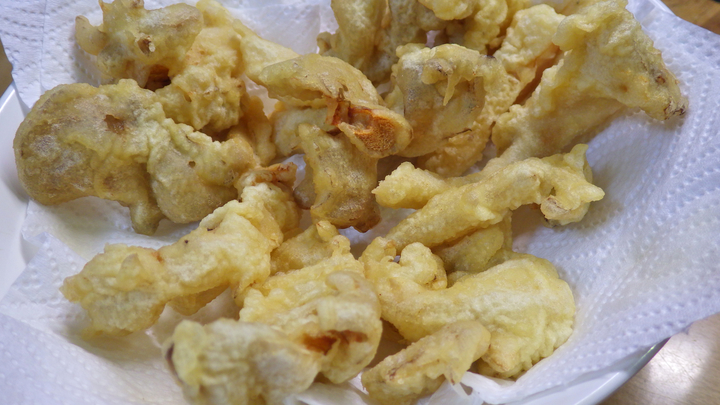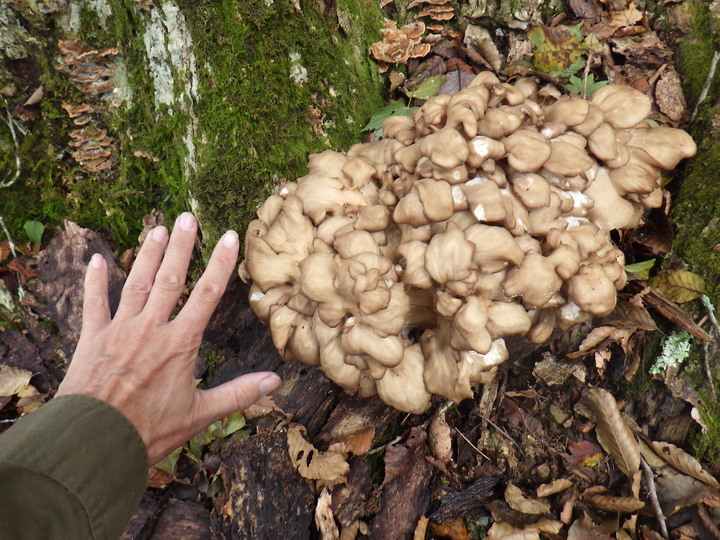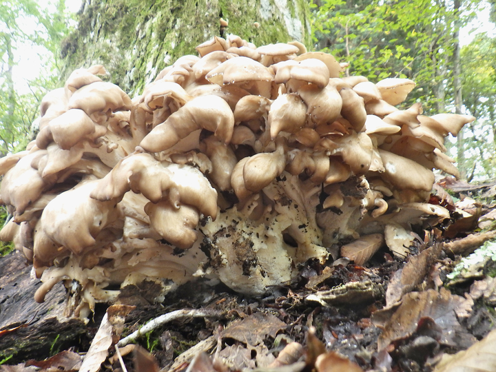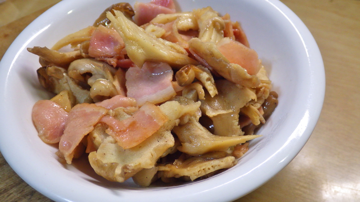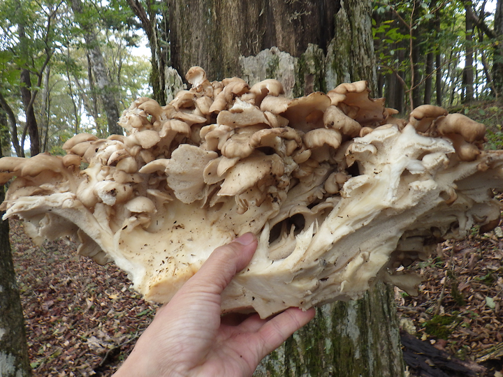 最初にパッと見た時は、少し古くなっているかと思ったのですが、まだまだぜんぜん新しい♪ 家に帰ってあれこれネットで調べたら、マイタケ取りのプロのページにこれと同様のマイタケが載ってました。 傘周辺がまるで垂れ下がったようになってますが、そのページに書いてあった通り、香りがハンパない!! 車の中や家に帰ってからも、近くにいるだけで、嫌味のない、心地よい茸の香りが辺り一帯に♪ 周りにあった木の皮をどけた所。 根元周辺は、表面だけですが、木の皮などを取り込んでました。 記念撮影♪ ネットの記事ですが、足場の悪い崖でのマイタケ取り・・・重い一眼を持っての行動は難しく・・・綺麗に撮るのも難しいとか。 今回は、車から降りて散策していたら目の前に♪ もちろん一眼で撮りました♪ これたった一つで大収穫・・・嬉しい以上に、全部を保存することが出来るか、綺麗に持ち帰れるのか心配に・・・ ここまで10月20日。 ざっくり根元から切ってナイフで大雑把に汚れた部分を切り落としました。 この後、持ち帰る際に周囲は崩れると思われ、どのみちさらに切り落とすので、完全に綺麗にはしませんでした♪ 朝まで雨だった雨上がり・・・水分を吸って、見た目以上に重い!! マイタケ <舞茸> 栽培方法が確立されていますが、栽培ものに比べて天然物は香り&風味が段違いです。 マツタケ同様にマイタケ採りにもプロが存在し、どこに生えるか知っているため、そんなプロ同士の熾烈な競争に素人が入って勝てるはず がない・・・ほんとそう思います・・・マツタケなんて絶対無理!! そんな私が、いつものようにふらふらと散策していたら、足元に♪ マイタケはミズナラに、トンビマイタケはブナの根元から生えます。 ちなみにマイタケが生えるミズナラは、100本に1本とか・・・ 白っぽいマイタケは9月頃、中間タイプは、9月中旬〜10月上旬、黒いタプは、9月後半〜10月上旬頃に見られるとの情報があります が、今回私が採取したのは、中間タイプな色合いで時期としては遅い!! 標高の違いかな? 保存方法: ・冷凍:1ヶ月 汚れを落としたら適度に割き、フリーザーバッグに空気を抜いて入れます。 冷凍すると旨味が増すとか。 ・冷蔵:数日 キッチンペーパで包んだら袋へ入れて冷蔵庫へ。 虫がいると寒さのためか中から出てきます・・・ほんとに短期間(1〜2日)用。 ・乾燥:長期・・・ 小さく割いたら2日程度天日で干します。 さらにこれを冷凍保存すればなおベスト。 天ぷら。 採取した当日です。口に入れる前から香り高い♪ パラパラと塩を振って・・・♪ それを口に入れたら・・・♪ 口の中にキノコの山が広がります♪ 天ぷら。パート2♪ いろいろな天ぷらや唐揚げでやってるのですが、大量に作った時は、十分な量のキッチンペーパーで包んだ後、袋へ入れて、冷蔵庫へ入れ ます。 す・る・と・・・翌日見ると、キッチンペーパーが油を吸いまくってくれるんです♪ 知ってるか・・・ 冷たいそのままでも味がよく分かって美味しいし、レンチンしても良いです♪ ・・・それはさておき♪ 前日は塩で頂いたので、今度はツユで♪ 天つゆは滅多に使わないので手元になく♪ めんつゆ、みりん、水(水の量はめんつゆの濃度による)で手作り♪ これも信じられないほどに美味しい♪ 口の中に広がる、クドくないキノコ風味♪ ここまで2日に渡って天然マイタケを頂いてきて・・・ふとした時にマイタケの香りが漂う・・・ もしかして・・・私の体からマイタケ風味が!? ベーコンと一緒に炒めもの。 冷蔵庫へ一時的に保存していたものから虫が出てきたので、急遽、手持ちの食材・・・ベーコンで炒めました。 スライスしたにんにくをオリーブオイルで香りが出るまで炒めたら、ベーコン、マイタケを投入し、塩コショウで味付けするだけ♪ これだけで、ベーコンにもオリーブオイルにもマイタケの香りが移って、全てが美味しい♪ 最高すぎる♪ ブタコマと一緒に炒めもの。 バター醤油で塩コショウを少々♪ 香り最高&激美味♪ マイタケご飯。 これは定番料理♪ 他の具材を入れるレシピも多いのですが、シンプルに油揚げだけがおすすめ♪との情報で♪ 結果、激美味♪ これは他の具を入れても間違い無いです♪ 作り方: 1、お米に水を吸わせておきます。 2、フライパンに水、酒、みりん、醤油、鶏ガラスープの素を入れて、マイタケと細切りした油揚げを入れて数分煮ます。 ※この手順を省略して、いきなり炊飯器で炊く方法もあります♪ 3、炊飯器にお米と煮汁を規定量まで入れたら、マイタケと油揚げを載せて炊きます。 煮汁が足りない時は水を加えます。 4、炊きあがったら軽く塩を振ってざっくり混ぜたら完成♪ 前日のマイタケご飯をチャーハンにしてみました♪ 風味は健在♪ 美味しい♪ 乾燥。 扇風機の風では完全に乾燥させる事が出来ないので、冷風扇の衣類乾燥機能を使ってます。(カラカラに乾燥して若干暖かめの風がでま す。) カラカラになっていても、曲げようとし