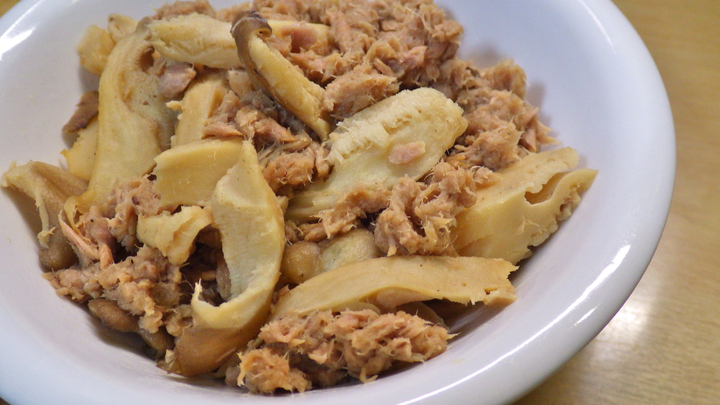 最初にパッと見た時は、少し古くなっているかと思ったのですが、まだまだぜんぜん新しい♪ 家に帰ってあれこれネットで調べたら、マイタケ取りのプロのページにこれと同様のマイタケが載ってました。 傘周辺がまるで垂れ下がったようになってますが、そのページに書いてあった通り、香りがハンパない!! 車の中や家に帰ってからも、近くにいるだけで、嫌味のない、心地よい茸の香りが辺り一帯に♪ 周りにあった木の皮をどけた所。 根元周辺は、表面だけですが、木の皮などを取り込んでました。 記念撮影♪ ネットの記事ですが、足場の悪い崖でのマイタケ取り・・・重い一眼を持っての行動は難しく・・・綺麗に撮るのも難しいとか。 今回は、車から降りて散策していたら目の前に♪ もちろん一眼で撮りました♪ これたった一つで大収穫・・・嬉しい以上に、全部を保存することが出来るか、綺麗に持ち帰れるのか心配に・・・ ここまで10月20日。 ざっくり根元から切ってナイフで大雑把に汚れた部分を切り落としました。 この後、持ち帰る際に周囲は崩れると思われ、どのみちさらに切り落とすので、完全に綺麗にはしませんでした♪ 朝まで雨だった雨上がり・・・水分を吸って、見た目以上に重い!! マイタケ <舞茸> 栽培方法が確立されていますが、栽培ものに比べて天然物は香り&風味が段違いです。 マツタケ同様にマイタケ採りにもプロが存在し、どこに生えるか知っているため、そんなプロ同士の熾烈な競争に素人が入って勝てるはず がない・・・ほんとそう思います・・・マツタケなんて絶対無理!! そんな私が、いつものようにふらふらと散策していたら、足元に♪ マイタケはミズナラに、トンビマイタケはブナの根元から生えます。 ちなみにマイタケが生えるミズナラは、100本に1本とか・・・ 白っぽいマイタケは9月頃、中間タイプは、9月中旬〜10月上旬、黒いタプは、9月後半〜10月上旬頃に見られるとの情報があります が、今回私が採取したのは、中間タイプな色合いで時期としては遅い!! 標高の違いかな? 保存方法: ・冷凍:1ヶ月 汚れを落としたら適度に割き、フリーザーバッグに空気を抜いて入れます。 冷凍すると旨味が増すとか。 ・冷蔵:数日 キッチンペーパで包んだら袋へ入れて冷蔵庫へ。 虫がいると寒さのためか中から出てきます・・・ほんとに短期間(1〜2日)用。 ・乾燥:長期・・・ 小さく割いたら2日程度天日で干します。 さらにこれを冷凍保存すればなおベスト。 天ぷら。 採取した当日です。口に入れる前から香り高い♪ パラパラと塩を振って・・・♪ それを口に入れたら・・・♪ 口の中にキノコの山が広がります♪ 天ぷら。パート2♪ いろいろな天ぷらや唐揚げでやってるのですが、大量に作った時は、十分な量のキッチンペーパーで包んだ後、袋へ入れて、冷蔵庫へ入れ ます。 す・る・と・・・翌日見ると、キッチンペーパーが油を吸いまくってくれるんです♪ 知ってるか・・・ 冷たいそのままでも味がよく分かって美味しいし、レンチンしても良いです♪ ・・・それはさておき♪ 前日は塩で頂いたので、今度はツユで♪ 天つゆは滅多に使わないので手元になく♪ めんつゆ、みりん、水(水の量はめんつゆの濃度による)で手作り♪ これも信じられないほどに美味しい♪ 口の中に広がる、クドくないキノコ風味♪ ここまで2日に渡って天然マイタケを頂いてきて・・・ふとした時にマイタケの香りが漂う・・・ もしかして・・・私の体からマイタケ風味が!? ベーコンと一緒に炒めもの。 冷蔵庫へ一時的に保存していたものから虫が出てきたので、急遽、手持ちの食材・・・ベーコンで炒めました。 スライスしたにんにくをオリーブオイルで香りが出るまで炒めたら、ベーコン、マイタケを投入し、塩コショウで味付けするだけ♪ これだけで、ベーコンにもオリーブオイルにもマイタケの香りが移って、全てが美味しい♪ 最高すぎる♪ ブタコマと一緒に炒めもの。 バター醤油で塩コショウを少々♪ 香り最高&激美味♪ シーチキンと炒めもの。 元のレシピは“無限マイタケ”で、電子レンジを使ったものでしたが、フライパンで作りました♪ 食べやすくて美味しいので、あっと言う間にすべて頂いてしまいました♪ 作り方: 1、マイタケは好みのサイズにして、ツナは油をきる。 2、フライパンにマイタケ、ツナ、ごま油、鶏ガラスープの素を投入して炒めるだけ♪ (元のレシピは、マイタケとツナだけレンジでチンしたら、ごま油と鶏ガラスープの素を混ぜて完成♪でした。) 焼きマイタケの味噌汁。 どんな料理で頂こうかと考えて、キノコと言えば味噌汁も外せない♪ で、調べ始めたら、焼いたマイタケを味噌汁に入れる情報が沢山出 てきました♪ 想像しただけで美味しそう♪ で、早速♪ 作り方: 1、マイタケを手でほぐしたら、フライパンに油を敷いて焼き色が付くまで弱火でしんなりするまで焼く。 2、鍋に水、出汁を入れて煮立たせた後、具を入れ味噌を溶き入れたらひ