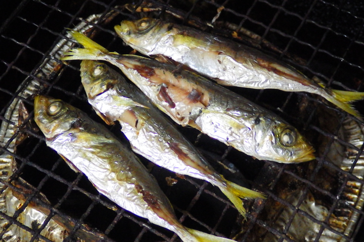 写真手前。 マアジ。 美味しいアジの中でも一番美味しい種類です。 ゼンゴの湾曲が大きい、体は赤色っぽいです。 下の2匹。体長31cm。 下の1匹。体長33cm。 マルアジ。 目が大きいので単純にメアジかとも思ったのですがどうも違う・・・メアジはもっと寸胴。 全体に青っぽく、名前の通りマアジに比べて扁平でなく丸みを帯びる、ゼンゴの湾曲が緩やかで、尾の付け根に小さな1対のヒレがあるの が特徴。 上2匹がマルアジ、下2匹がマアジです。 サビキ釣りで、偶然、マルアジとマアジが1匹ずつ! 釣れたので並べてみました。 上がマルアジ、下がマアジです。 釣った時は違いに気付かず・・・捌く時に2匹を同時に見て気付きました。 写真では、体高の違いが目立ちますが、実物を手に持つと・・・上のマルアジは名前の通り♪ 丸くて長い! 筒状♪ 逆に下のマアジは平べったいのです。 アジ。 みなさんご存知、アジは美味しいです。アジは味に通ずと良く言われます。 明け方(朝まづめ)、夕方(夕まづめ)の微妙な明るさの状態が好きです。日中でも濁りが入り、微妙な明るさとなる深さの辺りで釣れた りします。 小さなものは、丸ごと唐揚げ、大きなものは刺身にアジフライに・・・書いているだけでヨダレが・・・ 釣り方: サビキ釣りが最もポピュラーでしょう。浮き釣りが好きな方は浮きでも良いです。 やや大型を狙う場合は大きな浮きを付けてサビキを投げる投げサビキにします。 弓角(和製ルアー)で狙う場合はかなりスローで巻き上げます。 ・・・当然ですが、回遊魚なので近くを回遊していないと、どれだけ頑張っても1匹も釣れません。 料理法:刺身・たたき・つみれ汁・なめろう 弓角(ルアー)にも果敢に喰い付いて来ます。 11月上旬に弓角で釣れた20cm超の個体。 ギンガメアジ。通称:メッキ。 死滅回遊魚で、海流に乗って日本に来ても、冬の寒さには耐えられずに死んでしまいます・・・原発の温水で冬も生きながらえ一部 GT(ジャイアント・トレバ リー)とも呼ばれるほどに育つようです・・・(成魚は180cm・80Kgにもなります。) 2012年、日本全国の原発が停止となったので、生きながらえていたGTも死んでしまうでしょう・・・(これが本来の姿ですが。) 刺身が絶品で、私は必ず刺身にしてしまいます・・・ 通称:メッキと呼ばれる種類には、その他、ロウニンアジ、カスミアジなどなどがいます。 ちなみにギンガメアジの特徴は、体側に5本の縦縞、エラ上部に黒点、尾びれに黒い縁取りなど。 釣り方: ルアーにも良く反応します。 サビキで釣る場合は、大量のコマセの中に突っ込んでくるので、多めのコマセで誘いましょう。 アジ料理: そのまま!! 体長5〜6cm程の小さなアジが釣れたので、3匹だけ丸ごと!! 頂いてみました。 ほんと、コロナになって年間の釣行回数は数回!! もう、魚・魚・魚って、頭の中が魚でいっぱいだったんです! そしてこれは、午後から釣りを始めて・・・全然釣れず・・・夕方になってから急に釣れたもの・・・超釣りたてです。 こんな食べ方ある!? なんてアホな・・・って思いながら・・・でも、よく考えたら、生きたままの踊り食いとほぼ同じ!! そしてそして・・・これはサビキで釣ったのですが、コマセ無しで釣ったものです。さてさて・・・ 頭の食感、ゼイゴの感じ、肉のぷりぷりに背骨があり・・・頭や内臓の味・・・ほんと、まんまですが、丸ごと喰ってる感満載!! 当た り前!! やはり上品とは言えませんが、それほど悪くもない! サバイバルではもちろん“あり”でした。 刺身。写真左。 刺身。写真右。 刺身。 刺身。メッキ。 奥の2切れがマアジ、その他はメッキ。 メッキ。 マアジ。7月下旬。体長12〜13cm程度。 マアジ。体長15cm程度。 メッキ。とても歯ごたえの良い身・・・マアジに比べると脂肪分が少なく体育会系。 適度な歯ごたえ&味を絡めるため、適度に刻んでみました。 今回は味付けにポン酢を使いました。刻んだネギがあればもっと最高! メッキのコリコリ&甘い身が大好きに・・・釣れたら、味を思い出して・・・もうずっとウキウキ♪ マアジ・・・何度も何度もしつこいですね・・・それだけ美味しく外せない食べ方♪ 夜釣りで釣れたアジ・・・“寝たい”よりも“食べたい”が勝り・・・夜更かしして一杯♪ メッキの他、イワシやフグも♪ メッキとフグ♪ メッキとフグ♪ ・・・ってデジャブ!? 刺身。 シンプルで凄く美味しい・・・もっと他の料理に挑戦したい気もあるのですが、アジが釣れると新鮮なうちに刺身で頂きたくなってしまう のです・・・ マアジは柔らかく脂が多くまったりとして旨みが半端無い!! メッキはシッカリした身が歯ごたえ良く絶品!! ・・・どちらも超おススメ! 適度な柔らかさと脂に味も良く・・・もっと釣りたい・・・ネギが合います。 写真手前。奥はサッパの刺身。 酢味噌でも美味しいですが、今回はポン酢で・・・もちろん、美味しいです♪ 酢で洗ったら身が白くなってしまいましたが、これでも美味しい♪ 背ごし。 小型の