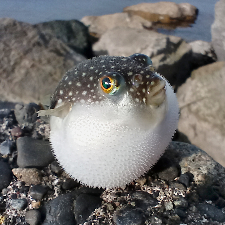 上がヒガンフグ。 下がコモンフグ。 ヒガンフグ。 20cm超。 ヒガンフグは褐色を帯びていることが多いのですが、この固体はあまり褐色ではありません・・・同定に迷いましたが多くの写真からヒガ ンフグと判断しまし た。 (このページの一番上に写っているヒガンフグの方が一般的なイメージです。) ヒガンフグ。 こちらはクーラーボックスで生きたまま家に到着しました。 上の固体は白っぽいのですが、段々と濃い色に・・・ 下の固体は黒っぽいのですが、段々と白っぽく・・・ ある程度、周りの環境に合わせて体色が変化するようです。 ヒガンフグ <彼岸河豚> 特徴:体は黄褐色から赤褐色を帯びる。大きな暗色班がある。 アカメフグより斑紋の数は多い。 春の彼岸の頃に良く獲れる。トラフグよりも美味しいと言われる。 毒性:内臓や皮膚は有毒(特に肝臓は猛毒)、肉は、無毒と言われていましたが、弱毒との情報もある上、東北地方で獲れたものは肉も猛 毒となるため食べては いけません。 ネットで調べると食べれないとの情報や食べれるとの情報などいろいろ見つかる。 良く似た種:アカメフグ。 コモンフグ。釣った直後。 大型になると雰囲気が違う・・・躊躇しましたが、これもコモンフグ。 黄色味が強い個体。 臀ヒレが黄色い。 背中には細かなトゲがありザラザラしてます。 上記3枚の写真は同じ個体。やや黄色味があってコモンダマシに似ますが、コモンフグでしょう。 コモンダマシの白点はもっと変形していて、全体的にまだら模様に見えます。 コモンフグ <小紋河豚>。 特徴:斑紋はやや青味を帯びる。目の下部分にまで模様がある。 毒性:内臓や皮膚は有毒(特に肝臓は猛毒)、肉は、弱毒でヒガンフグ同様に東北地方で獲れたものは肉も猛毒となるため食べてはいけま せん。 ネットで調べると食べれないとの情報や食べれるとの情報などいろいろ見つかる。 良く似た種:コモンダマシ、ショウサイフグ、クサフグ、マフグ・ゴマフグの若魚 コモンフグは、ほぼ円形の小白点。臀ヒレは淡黄色。 コモンダマシは、さまざまな形の小白点。臀ヒレは黄色。背の小さなトゲの基部は顕著な微小白点。地色は薄黄色で様々な形の白点でマダ ラに見えます。東シナ 海で釣れるそうですが、未確認情報で横浜でも釣れたとか・・・気を付けましょう・・・ ショウサイフグは、臀ヒレが白い。 ナシフグ・・・体の横にある班の周囲は縁取られ、梨の花のよう。 ※コモンダマシ、ナシフグ(極一部の地域を除く)は食べれません。 別名:ナゴヤフグ。食べたら美濃尾張(身の終わり)の洒落から来てます・・・ 沢山釣ったフグの中に良く見たら若干違う模様の個体が1匹だけ混ざってました・・・上2匹がコモンフグ、手前がショウサイフグです。 背側はほぼ同じなので判断不能・・・横から見たときに目の下辺りの模様が違います。 ショウサイフグ <潮際河豚>。 コモンフグは、全て暗色に白色斑、ショウサイフグは、白色に暗色班となります。(暗色班がもっと分りやすい固体も居ます。) 特徴:細かな暗色班。目の下部分にまで模様がある。 毒性:内臓や皮膚は有毒(特に肝臓は猛毒)、肉は、弱毒。 良く似た種:ナシフグ、コモンフグ、コモンダマシ、クサフグ、マフグ・ゴマフグの若魚 ※雑種フグ: 地球の温暖化の影響で雑種のフグが見つかっています。 その一つ、ショウサイフグとゴマフグの雑種。 背中とお腹にトゲが無く、尻ビレが白いショウサイフグと、背中とお腹にトゲが有り、尻ビレが黄色いゴマフグの雑種が太平洋側で増えて います。 どちらも筋肉(身)は食用にできるフグですが、雑種フグは必ずしも同じ場所に毒があるとは限らないと言う事で、厚労省は捕獲しても確 実に排除する事としている。 クックックッ・・・っと鳴きながらお腹が膨らみます・・・ トゲトゲは尖ってないので痛くありません。ザラザラした感じです。 とても綺麗な目 クサフグ <草河豚> 恐らく釣り人に最も嫌われている魚です。 ハリスはもちろん、金属の針まで噛み切られる時があります・・・ 特徴:その名の通り、緑色っぽい。背側に白い点、体の横に黒い班。 毒性:肝臓、卵巣は猛毒、皮は強毒、肉は弱毒。 良く似た種:ショウサイフグ、マフグ。 フグ。 毒キノコ同様に、未だに死亡者が後を絶ちません・・・自己責任で。 有名なフグ毒のテトロドトキシンは、水に溶けやすいので皮を剥いたら良く洗うと良いようです。また、乾燥させて干物などにすると何故 か分解されるとか。 釣り方: 陸からのフグ釣りは・・・サビキやアオイソメなど・・・何にでも喰ってきます。 他の魚が殆ど釣れない状況でもフグだけは大漁となることがあります。 殆どの釣り人は食べない(食べれないと思っている)ので、完全に外道&邪魔者扱いです。 それほど流れの速くない、潮がヨレて居る所などにアオイソメを中層に垂らすと良く釣れます。 夜釣りでは大型が釣れます。 ※このHPは決して素人によるフグ料理を勧めるものではありません。 種の同