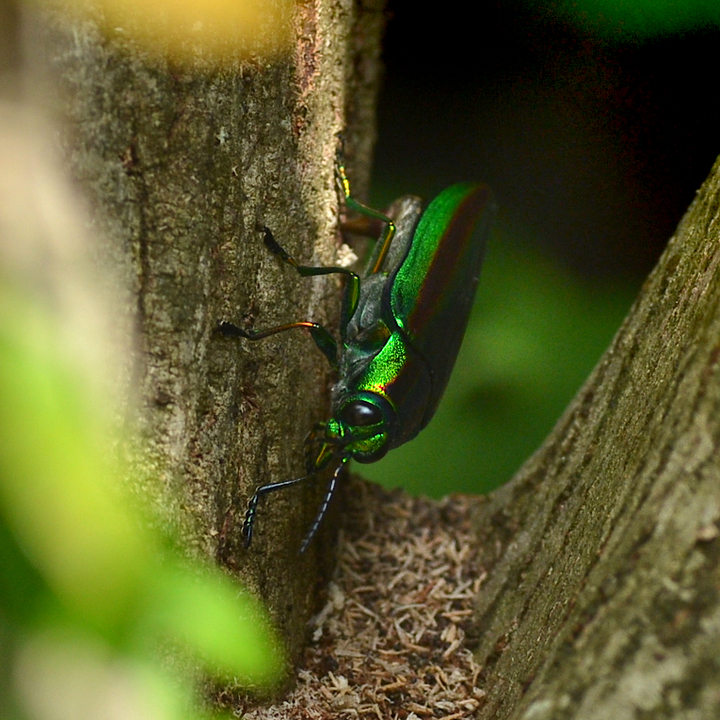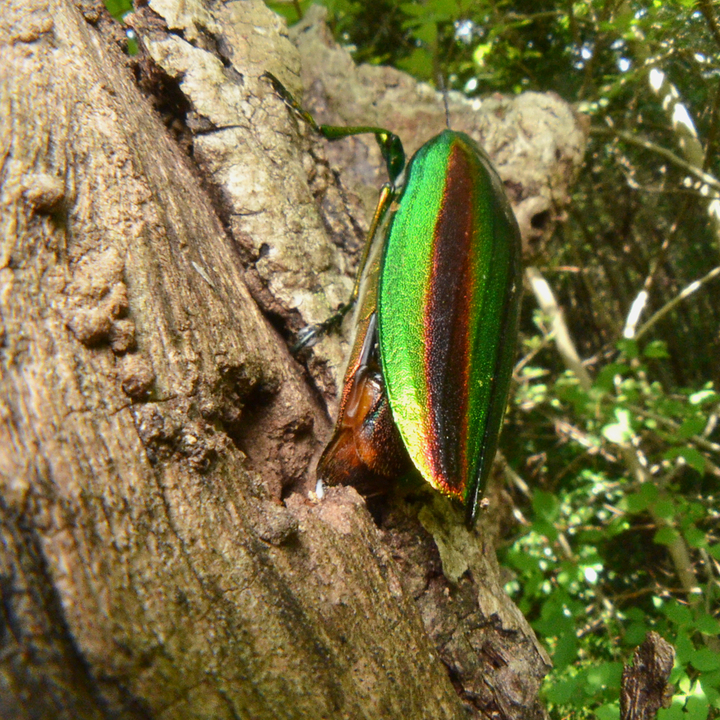 フタモンウバタマコメツキ。 でかい・・・体長36mm。(私の図鑑では最大32mmとなってます。) これはタマムシサイズ・・・個体数が少なく、目撃するのは稀だそうです・・・ ウバタマコメツキ。 子供の頃の記憶が間違いでは無かった・・・サビキコリはこうやって臭い攻撃もします・・・ 臭い攻撃はやる個体とやらない個体がいるのだろうか・・・ サビキコリ <錆木樵> 変わった名前です。 コメツキムシと言えば・・・ ひっくり返すとパチッっと首を折って飛んでいくのが面白い・・・子供の頃は遊びました。 上はカメラに激突した後、スタコラ逃げていく姿が面白かったのでつい・・・ ウバタマムシ <姥玉虫> 6月上旬。今まで何度もここに来ていました・・・今回も・・・僅かに体が見えて偶然気付いただけ・・・ アオマダラタマムシ <青班玉虫> 想像以上に良く歩き、飛びます。 しかも・・・人の気配を感じて木の裏側に身を隠します・・・ 玉虫はノソノソと動くイメージがありますが、これは違ってまるで忍者か? ヤマトタマムシに比べて小さいので気付き難いです。 シロオビナガボソタマムシ <白帯中細吉丁虫> 漢字名を調べたら吉丁虫? “吉丁虫”で調べたらこれでタマムシと読むこともあるようです。漢字名では、“白帯長細玉虫”も見つかり ました・・・“中細” と“長細”も違う・・・ 名前は“白帯”ですが、写真のように青味がかった“白帯”の個体も居るようです。 体長1cm弱の小さなタマムシでした。 クロナガタマムシ <黒長吉丁虫> 地域により色彩変異があるようですが、黒に、このブルー・・・綺麗♪ ムネアカチビナカボソタマムシ。アカメガシワの葉にて。 コウゾチビタマムシ。 チビタマムシの仲間は、小さい上に情報も少なく・・・同定に迷うと思われます・・・ 今回は、コウゾの葉の上で見つけた事、ネットで調べたコウゾチビタマムシの模様とほぼ同じだったので間違いないでしょう。 クズノチビタマムシ。 クズの葉の上にて。 タマムシの群れ。 この1本の木に何匹いるのだろうか・・・常に5〜6匹が飛び続け・・・枝や葉に何匹いた!? それはさておき・・・飛行している時の形!! ぶ〜んって飛んでいる姿が目に入った時、この形だったらタマムシです。 ちなみに、コガネムシ系は翅が短いので、大袈裟に表現するとミッキーマウス的な感じに。 カナブン系は、外側の翅を閉じているので、ジェット機の様に高速飛行。 大きさや翅の長さが似ているカミキリムシは、触角が長いのと、全ての脚を広げている&超低速飛行なので分かり易い♪ 綺麗な色をそのままにカメラに写すのが難しい・・・ 高速に脚をバタバタ動かしていたので写ってませんが、脚はちゃんとありました。 産卵中のタマムシ。 ヤマトタマムシ <大和玉虫> 実物はとても綺麗なのですが、写真に撮ると綺麗さが伝わり難いです・・・ 目と足の裏以外はキンピカ・・・なぜこの様に進化する必要があったのか・・・ タマムシ類。 タイなどでこのタマムシも食用にされるのですが、羽は装飾用に取り除いてから調理されるようです。 揚げる、炒る、焼くなどで食べられています。 ウリハムシ。 キイロナガツツハムシ。 ギシギシとイチゴハムシ。 クロウリハムシ。 写真の植物はアレチウリ。 ヨモギハムシ。 バラルリツツハムシ。 イタドリの葉に居ました。 コガタルリハムシ。 ギシギシの葉にて。 キボシルリハムシ。 クロボシツツハムシ。 ヤツボシハムシは色彩変異が激しいので写真のような模様のハッキリしないものも居るのでした。 ヤツボシハムシ。 その名の通り翅には4つずつの班があるハムシです。 クロボシツツハムシ。 ドウガネツヤハムシ <銅鉄艶葉虫> タラノキに良く着いてます。 青黒い感じのものはアオグロツヤハムシです・・・そのまんま。 ムナグロツヤハムシ。超可愛い♪♪♪ キアシヒゲナガアオハムシ。 アカガネサルハムシ。 イタドリハムシ。 フジハムシ。 3月下旬、フジの葉を食べるハムシですが、ヒイラギの葉の上で。 テントウノミハムシ。 ヒイラギを食べるハムシ。ヒイラギの木に居ました。 黒地に赤紋・・・テントウムシに似ていますが、触角が長い!! 他の生き物は騙せても私は騙されん!! 早速、ハムシの仲間で調べたらやっぱり♪ 触角が短くなるように進化したら間違うかも!? ムナキルリハムシ。 ヒゲナガハムシの仲間。 フタホシオオノミハムシ ルリマルノミハムシ。 光沢があり、後ろ脚が太いのが特徴です。 10月上旬、薄紫色のヨメナの花にて。 イチモンジカメノコハムシ。 撮影していたら顔を僅かに見せてくれました。ちらっ♪ セモンジンガサハムシ。 背中に金色の紋と、グルッと一周する金色の帯・・・美しい♪ 金箔細工のよう・・・ ヨツモンカメノコハムシ。 ヒメジンガサハムシ。 渋い・・・地味・・・です。 ホソクビナガハムシ。 良く似た種が幾つかあります。ちなみに、写っている植物はサルトリイバラです。 キイロクビナガハムシ。 幼虫は糞を背中に乗せるとか・