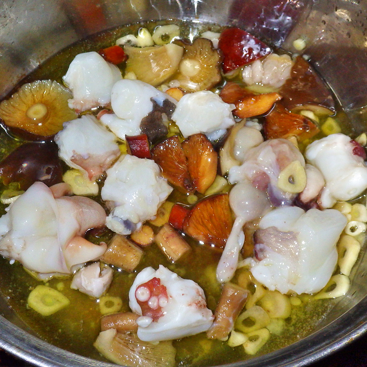 串焼き。 こちらもプリプリで美味しい。 醤油を着けながら焼いて香ばしくしても良いでしょう。 炒め物。 タコが手元にありながら肉も食べたい・・・一緒に炒めて見ました。 火が通ったら醤油を入れて炒めました・・・とても香ばしい醤油とタコの焼ける香り・・・祭りなどで並ぶ夜店を思い出しました。 美味しいです。途中でマヨを付けましたが、これがさらに美味しい。 タコチリ。 フライパンにチリソース、酒、砂糖、ゴマ油、ニンニクのみじん切りを炒めておき、下拵えしてブツ切りしたタコを投入して炒めるだけ。 タコチリにもバリエーションがいろいろあるようで、タコの唐揚げで作る方法もあります。 柔らかくプリプリで辛くて美味しい・・・ビールに最高! タコのガリシア風。 これが!!! 単なるピリ辛だけでない! 茹でたジャガイモの風味ともバツグンの相性です♪ ジャガイモ無しのレシピもありますが、絶対に!! ジャガイモも一緒に使って下さい! これは超おすすめ♪ 作り方: 1、鍋に水(具がひたひたに浸かる程度)、ジャガイモ、タマネギ、塩を入れて火に掛けます。 玉ねぎと一緒に茹でると柔らかくなるようです。この玉ねぎも美味しいので後で美味しく頂いて下さい♪ ここでローリエを入れるレシピもあります。 2、火が通ったらタコ(冷凍したそのままで良い)を入れます。 弱火でコトコト10分ほど・・・30分以上茹でるレシピもあります♪ 冷凍したタコを使うと柔らかくできるそうです。 3、茹でたら、熱々のジャガイモをスライスしてお皿に並べ♪ ※焼けど注意!! 4、熱々のタコはザックリ、ぶつ切りしてその上に載せたら♪ ※焼けど注意!! 5、オリーブオイル(エクストラバージンがあれば最高♪)、パプリカパウダー、塩(粗塩・岩塩があれば◎)、パセリを載せて完成♪ 本場で使うパプリカパウダーは辛味があるのですが、日本の物は辛味が足りないとか・・・レシピによっては、チリパウダーを追加す るものも見つかります。 今回私はチリパウダーオンリーで作りましたが、激美味でした♪ やわらか煮。 1、下拵えしたタコを鍋に入れ弱火で煮、アクを取る。 2、煮すぎてしなわないように注意し、しょうゆを加え、ひと煮立ちしたら火を止める。 3、冷まして味を含めたら完成。 個人的に料理法としての煮物は唐揚げなどよりもランクが下がるのですが、たまには煮物も良いものです。 タコとタケノコの煮物。 6月・・・タコとタケノコ、どちらも今が旬なのです。 これはちょっと変わった煮物・・・炒め物に近いです。 1、タコ、タケノコは下拵えを済ませた茹であがったものを使います。 2、タコを油で炒め、さらにタケノコも投入して炒めます。 3、塩コショウを掛けて炒めたら、水、麺つゆ、砂糖を加えて煮込みます。 4、汁が極僅かになったら完成。 タコとタケノコの風味、炒めたのでタコの焼けた香り(お祭りの出店で嗅ぐ匂い)もあり、それぞれの食感の違いが飽きさせず・・・ビー ルで一気に食べてしまいました。 タコのやわらかトマトソース煮。 1、玉ねぎ、にんにくを細かく切ったらオリーブオイルで炒めます。 2、火が通ったらカットトマト(トマトの缶詰)、茹でたタコを投入し、塩コショウで味付け。 3、弱火で30分以上、コトコト煮たら完成! 美味しいです。ちょっと洋風な感じがまた良いです。 タコのトマトソース炒め。 翌日、一つ上でトマトソース煮で作ったものに、モヤシを加えて炒めました。 美味しいです。病みつき・・・ビールが美味しい! パスタに。 トマトソース煮で残ったものをパスタに乗せてみました。 想像通り・・・パスタに合います・・・煮込んだトマトとシーフード・・・当然か・・・ 数日間、少しずつ手を加えながら、美味しく頂きました。 鮨。 前列手前から、皮むきタコ足薄切り、タコ足薄切り、皮むきタコ頭、タコ足炙り。 後列手前から、タコ足先、タコのエラ、タコ足先。 買ったものと違い、茹で過ぎていないタコ。柔らかくぷりぷり・・・どれも美味し過ぎ・・・ タコだけですが、下手な回転寿司のタコよりも段違いに美味しいです。 お好み焼き。 キャベツを混ぜた生地をフライパンへ流し、その上に、サッと湯通ししたタコとブタ肉を載せて焼き、途中で裏返してジックリ焼いて作り ました。 タコは下処理を行わず、生のまま完全密封にして冷凍庫で約半年間保存しましたが、釣りたてと全く同じ食感です。 プリプリで柔らかく、口の中で軽くはぜる様な食感。タコの焼けた香ばしい香りもあり、とても美味しく頂きました。 なぜ、タコ焼きでなく、お好み焼きにしたのかは・・・タコ焼き器が無かっただけです・・・ スパゲッティに。 磯で採取して塩蔵していたワカメと一緒に、茹でたタコを炒めてみました。 茹でて炒めたタコ・・・大分・・・小さくなってしまい少々残念ですが、もちろん、美味しい。 買ってきたものと違い、自分で採ったものは数倍美味しく感じるのは何故か!? 自給自足生活・・・憧れます・・・見た目は苦し