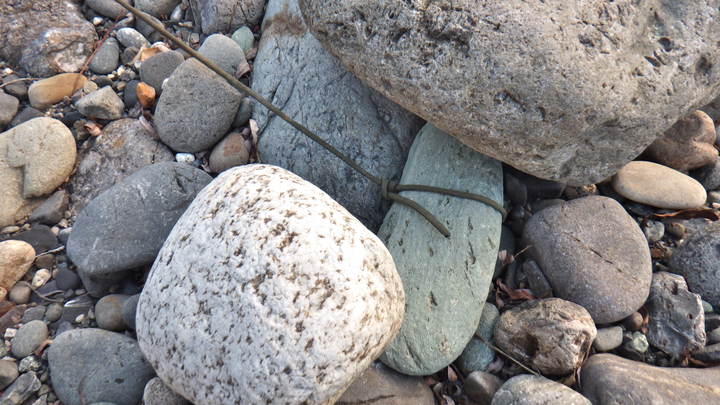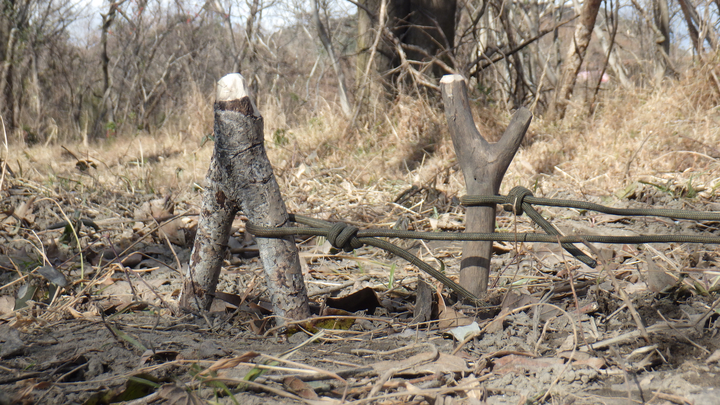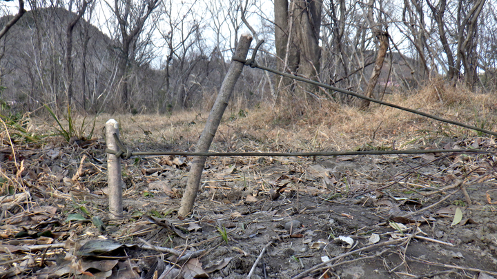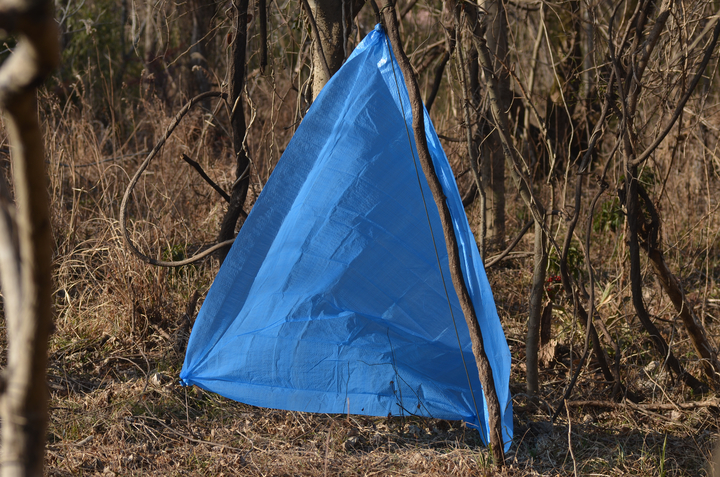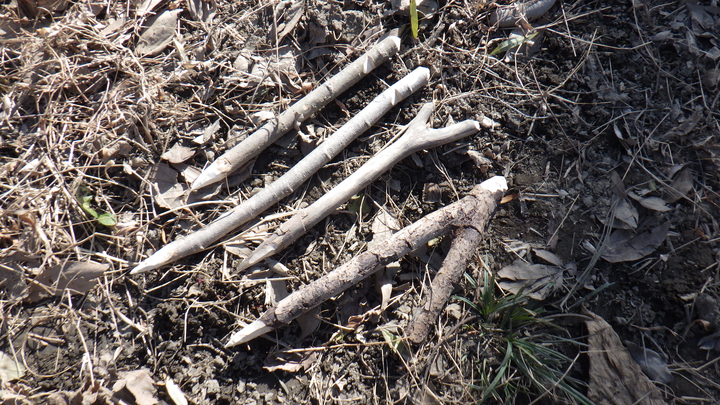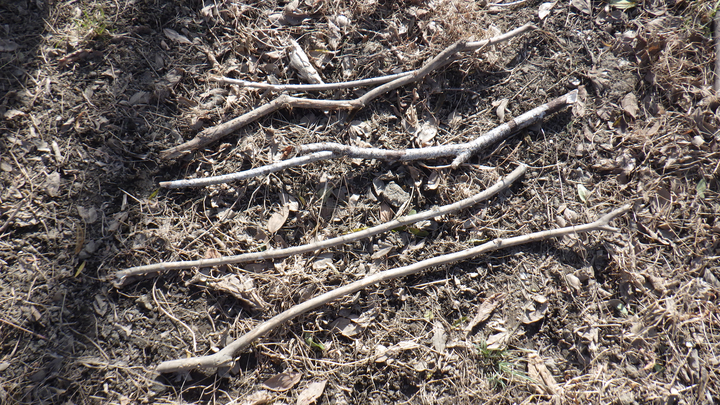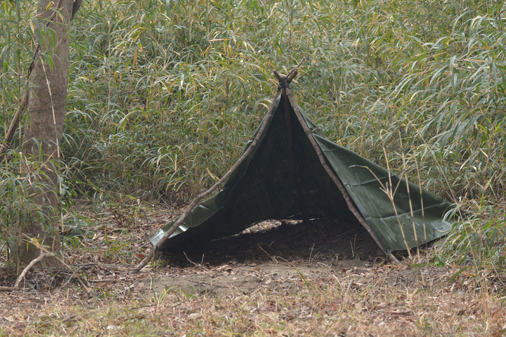ただの寝床・住み家です。 ただ、これがあるかないかで、体力が奪われるか、回復するか、翌日の生活に相当! 影響するものです。 もちろん、これは毎日訪れるもの!! 一時的な物から、中長期的なものまで・・・必要に応じ、それなりの体力と時間を消耗しても作る べきものです。 そんな睡眠の場所以外にも、日中の小休憩に、強風や雨を避けるため、獣や蚊などを避けるためにも役に立つのです。 ここでは、そんなシェルターの特に一時的な物を扱って見ます。 いきなりですが・・・ まずは、シェルター作りの前に場所の選定を行ないます。 これの良し悪しで、シェルター作りが成功だったかどうかも決まったようなもの・・・ここが一番重要です。 まず、絶対に避けた方が良い場所は・・・もちろん、命の危険がある場所です!! 落石の危険がある崖下、増水して水没する危険がある川岸は絶対に避けて・・・ 次に、周りに何もない風当りの強い場所、ジメジメして体温の奪われる場所も避けます。 逆に、近くに水場がある、食料の調達に都合が良い場所ならば、特に良いです。 蜆塚遺跡の復元住居。 ここは佐鳴湖の東岸にある丘の上。当時の水位は分かりませんが・・・ 水の湿気、蚊などを避けた、日当たりの良い丘の上♪ 風は木々で防いだのかな!? そう言えば、命がけで行って来た長野県の茅野市尖石縄文考古館。 そこは遺跡があった場所なのですが、その場所も丘の上。日当たりが良く、あちこちでタンポポが咲いていたのを憶えてます。 岩穴。 滝沢鍾乳洞。縄文人が住んでいた洞窟。 この洞窟から、いろいろな遺物が見つかってます。 こんな場所を見つける事ができれば、雨、風をしのげるだけでなく、シェルター作りで奪われる体力と時間を温存する事ができます。 内部は相当広い(深い)のですが、そこまでなくても・・・ちょっとした岩の窪みなど、崩れてくる心配が無ければ利用するのも手でしょ う。 こちらは、硬いチャートで出来た山にあけられた穴。 穴の大きさは少し腰をかがめないと入れない程度。 深さは50m程で、ほぼこの大きさのまま行き止まりに。 住むには狭いですが、一時的な休憩ならば十分でしょう・・・ ちなみに、鉄より硬いチャートの岩山・・・機械を使わずに掘るのは不可能でしょう・・・あるものを利用するのが最善♪ 倒木。 倒木も簡易的なシェルターになります。 大きく枝を張ったものならば、枝の中に潜り込めます。 上の写真は根元側。全く手を加えていませんが、この中に潜り込む事ができます。 差し掛け小屋。 ふと・・・河原に流木が大量に集まってる&周辺は下草も枯れて広い♪ で、挑戦してみたのです。 増水した時に流木がドバ〜っと流れて来て、あちこちの木に引っ掛かったのでしょう・・・ 場所的には、河原から一段高い場所ですが、川からの西風が強く、おすすめできる場所ではありませんが、こんな事が出来る場所は限られ ているので、まずは練習と言う事で♪ 写真では左から右上に向かっている、一番太くて中心となる木、今回は・・・ これも材料として見つけていたのですが、、丁度良いあんばいに太い木(生きている木)があったので、急遽、予定変更で使って見まし た。 サバイバルでは、限られた体力(十分な栄養を摂るのが難しい)、限られた時間(食料調達などに時間を奪われる)の中で、効率よく作る 事も重要なのです。 ※知ったかぶりですみません♪ 写真は、とにかく太い木を長さに合わせて立て掛けて行ったものです。 今回は、一切木を切る事なく、周辺に流れ着いた流木をかき集めて作りました。 ここまで、約1時間少々。周辺を何往復したことか・・・写真で数えると・・・両面で60本程使ったようです。 上の写真からさらに30分後。 細い枝、曲がった枝など・・・とにかく、あちこち、ななめにも・・・重ねて行きます。 これは、この後、隙間を埋める素材・・・葉の付いたままの枝、落葉などを上に載せていくのに必要なのです。 因みに何処も縛ってません・・・必要であれば縛りましょう・・・今回は特に必要性を感じませんでした。 縛る場合、ヒモを探すor作る手間、あちこち結ぶ作業・・・これが意外と時間が掛かります。 写真では分かり難いですが、落葉が超少ない・・・これで終わりにしようかとも思ったのですが、あまりにも・・・ そこで、周辺の常緑の木・・・ドングリ系の木から葉の付いた枝先だけをいくつか集めて差し込みました。 まだまだ隙間だらけですが、とりあえず♪ 大量に枝を折るのが忍びなかっただけです♪ 写真は、ひとつ上の写真から、さらに1時間後です。 差し込む際のコツは、下の方からだんだんと上に向かって行く事。 これで、雨が中に入ってくるのを防ぐ事ができます。 入口はこんな感じ。 入口底辺は幅2m程あります。中で生活するには狭いですが、小休憩&寝るだけならば十分でしょう♪ 逆に寝るだけだったら、もっともっと低くて良いです。 中から撮影。 写真の様に・・・まだ