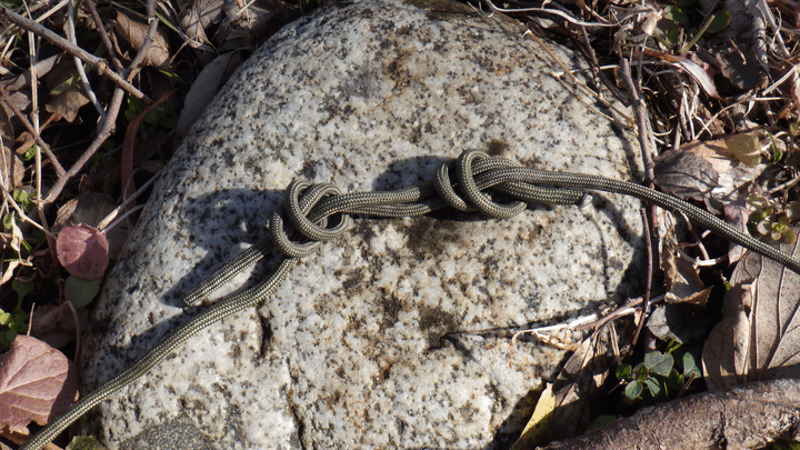 ロープを引っ張ると、出来た結びの両端がお互いに締めあう形になるのでロープの途中で結び目が動かないのです。
